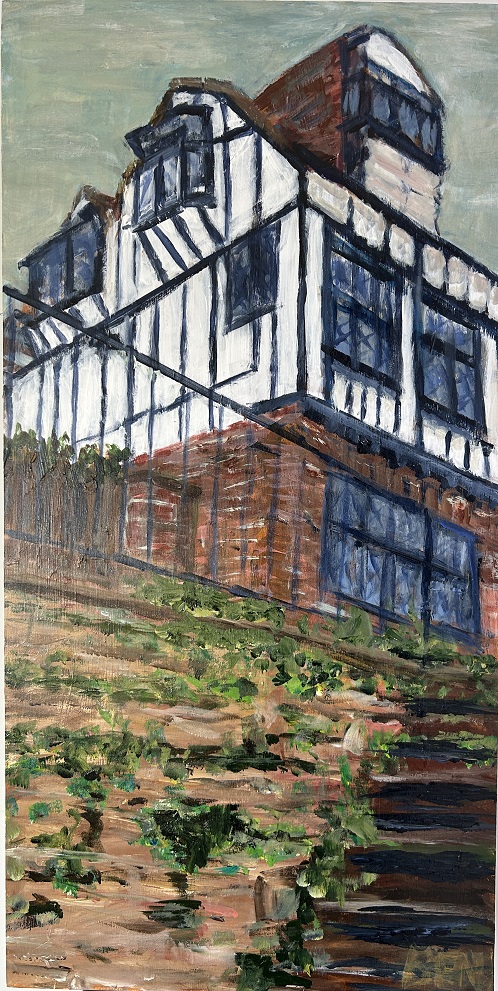 On a trip to Hastings I liked this angle for a Tudor style house. Acrylic on canvas, 15 x 30. $355